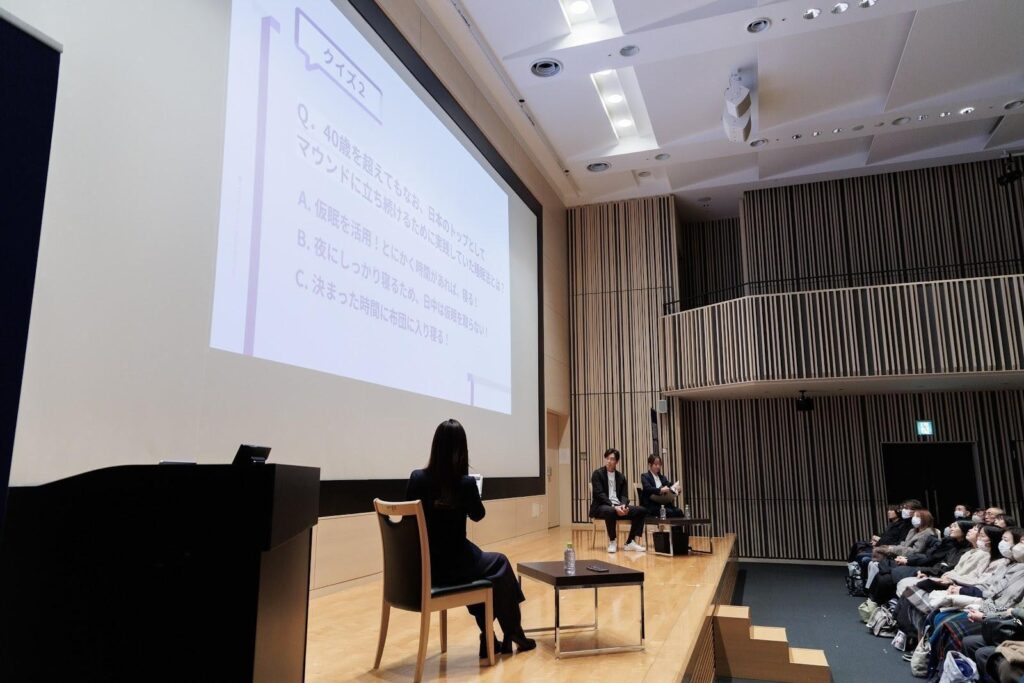 トークショーでは、和田氏のパフォーマンスを支えてきた睡眠コンディショニングをビジネスパーソンのライフスタイルに合わせてご紹介。プロのコンディショニングを「自分ごと」として捉えなおし、日常の習慣として取り入れてもらうことを目指しました。